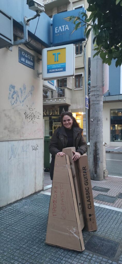 “Ήταν μια μέρα που ο κατασκευαστής μουσικών οργάνων και καλός φίλος, Γιώργος Πολυταρίδης (Εργαστήρι Χειροποίητων Μουσικών Οργάνων Πολυταρίδη) μας είπε ότι έχει επισκευάσει τρεις κιθάρες που θα ήθελε πολύ να δωρίσει σε εκπαιδευόμενους του σχολείου μας που παίζουν μουσική. Αποδεχθήκαμε την προσφορά του με μεγάλη χαρά. Τις τρεις κιθάρες παρέλαβε από το ταχυδρομείο η Αντιγόνη Ευστρατόγλου.