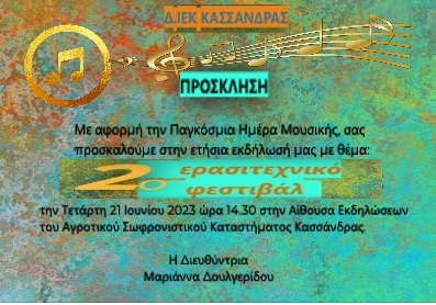 2ο ΕΡΑΣΙΤΕΧΝΙΚΟ ΦΕΣΤΙΒΑΛ ΔΙΕΚ ΚΑΣΣΑΝΔΡΑΣ ΔΕΛΤΙΟ ΤΥΠΟΥ Με αφορμή την Παγκόσμια Ημέρα Μουσικής 2023, τ