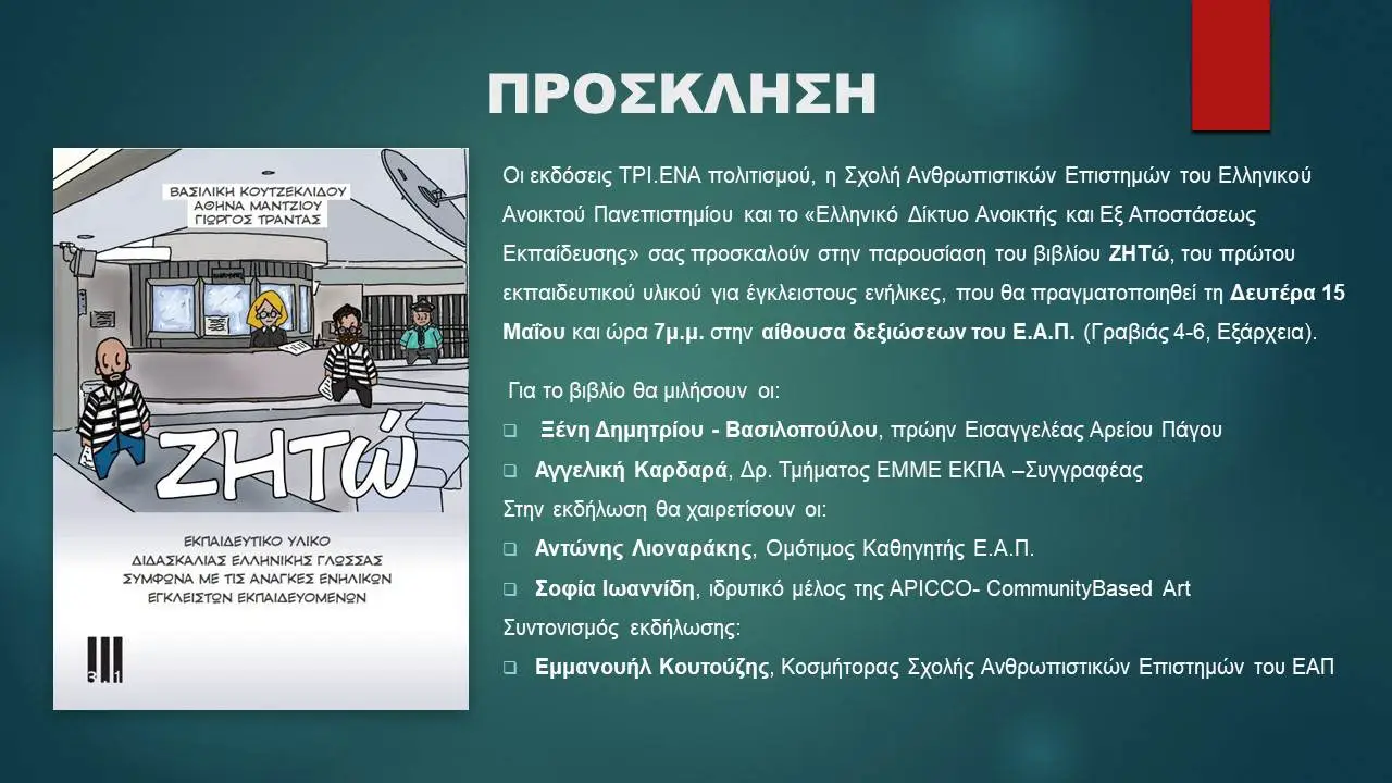 Εκδήλωση: Παρουσίαση εκπαιδευτικού οδηγού Ζητώ – Δράσεων Παρατηρητηρίου